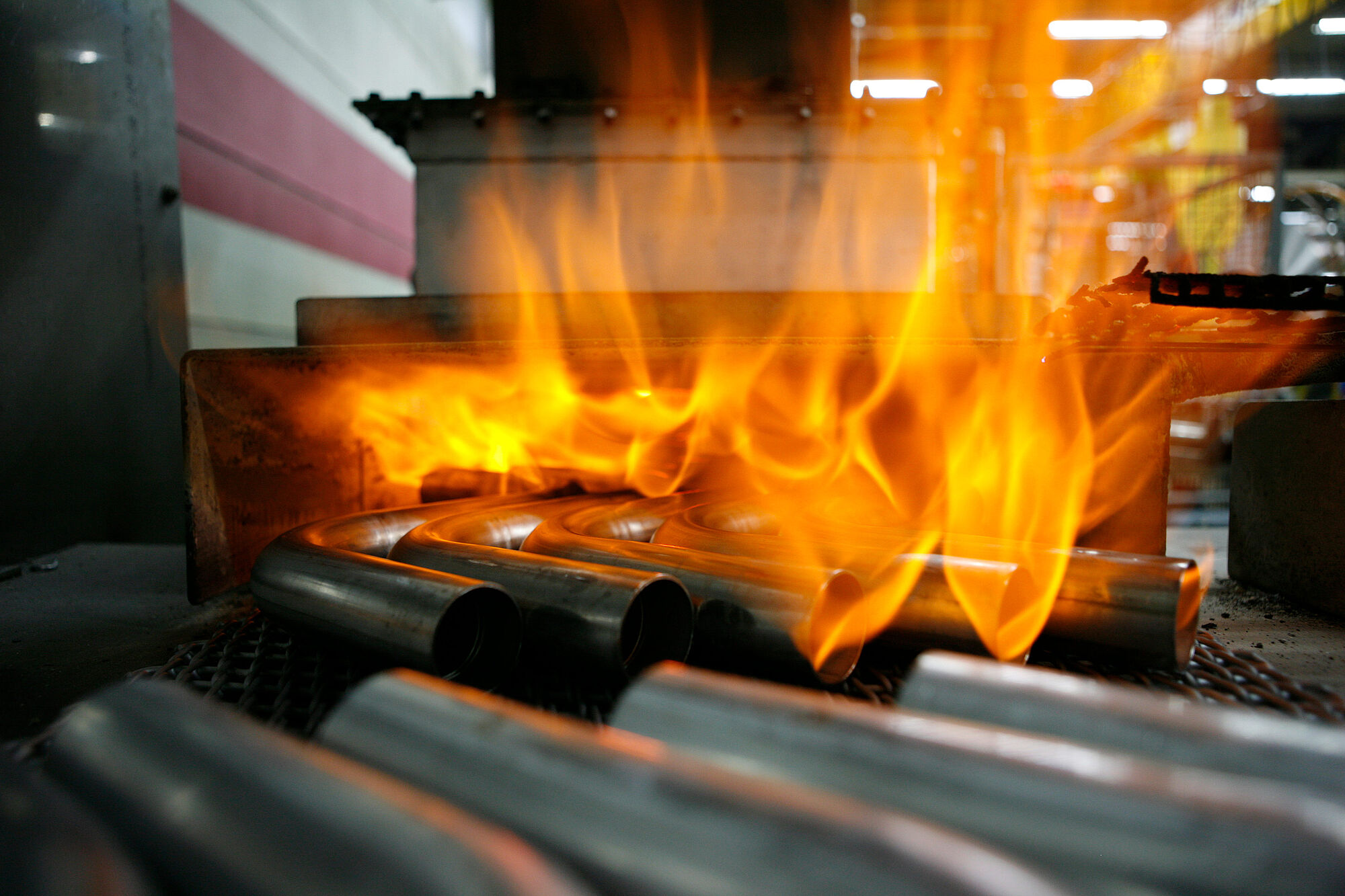 Beim Inline-Glühen werden die Rohre bei 300–1.200 °C unter Schutzgas blank geglüht. Hier ist eine Endlosfertigung möglich.